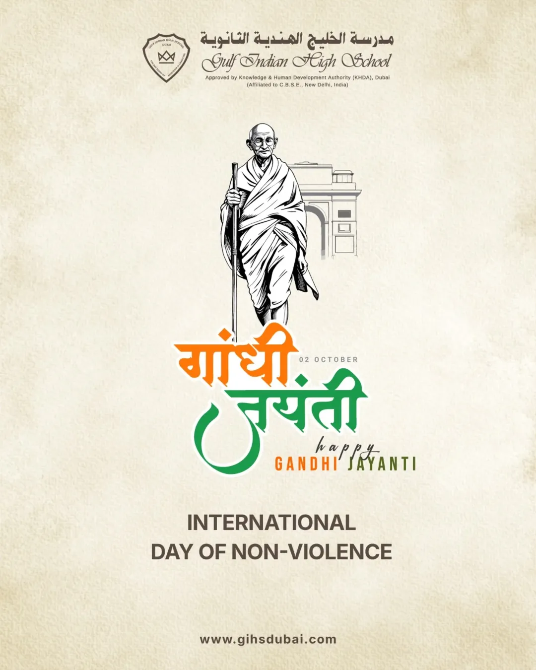 On this International Day of Non-Violence, Gulf Indian High School pays tribute to the timeless values of Mahatma Gandhi, whose principles of peace, tolerance, and compassion continue to inspire the world. 🌍✌️