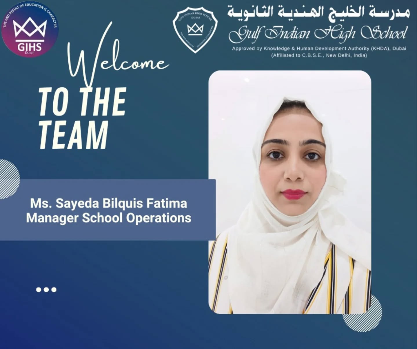 🔹 Ms. Sayeda Bilquis Fatima has joined as Manager – School Operations